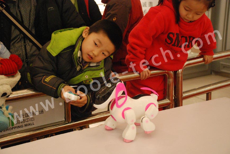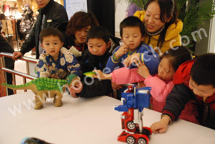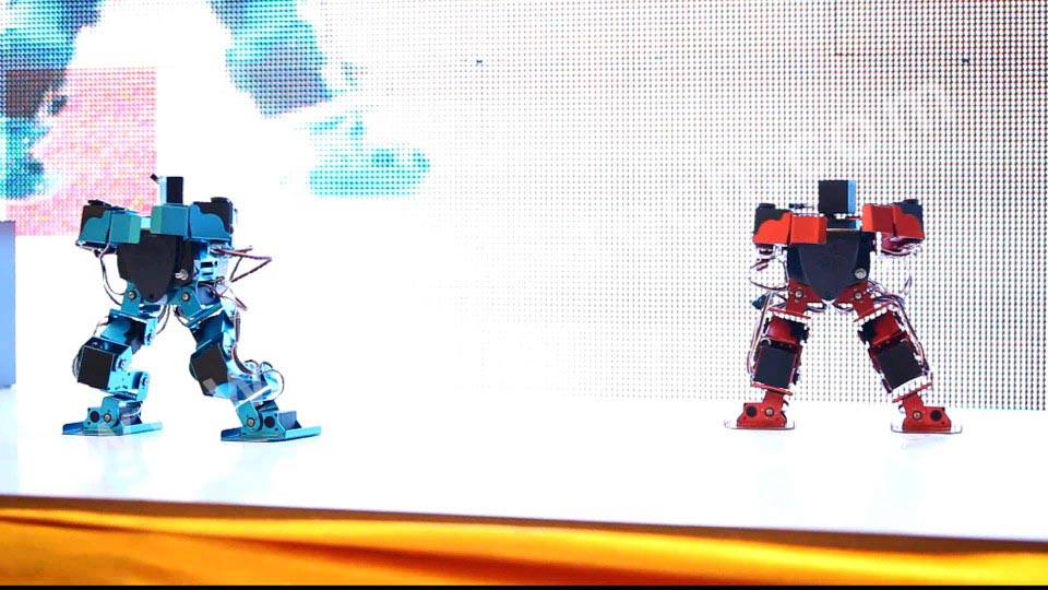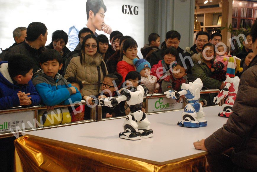 小型舞蹈機器人,是本場表演的重點,它能表演俯臥撐、仰臥起坐、前滾翻、后滾翻,表演節(jié)目:俏夕陽(舞蹈)、街舞、南非世界杯舞蹈;而最激動人心的還是火熱的江南style舞蹈,更有小朋友跟著舞蹈和機器人一起跳了起來。