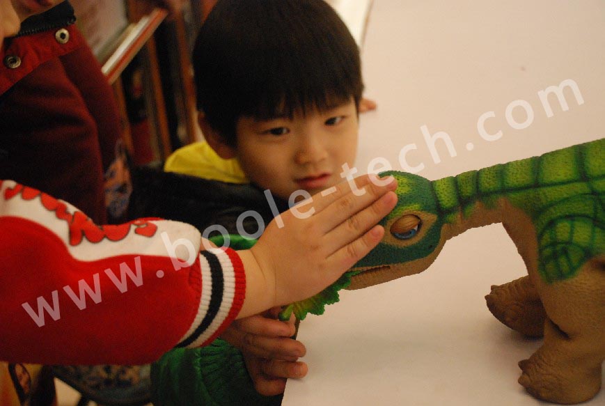 機器恐龍,機器恐龍具有一體成型的外觀,逼真的外形柔軟的皮膚,它可以仿真剛誕生到認知主人的過程,撫摸頭部它會很享受的眨眨眼,拍拍背部它會從睡覺中蘇醒。