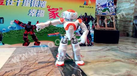 騎馬舞機器人,靈活的雙腳機器人,它能表演俯臥撐、仰臥起坐、前滾翻、后滾翻,表演節(jié)目:俏夕陽(舞蹈)、街舞、南非世界杯舞蹈;而最激動人心的還是火熱的江南style舞蹈,更有小朋友跟著舞蹈和機器人一起跳了起來。
