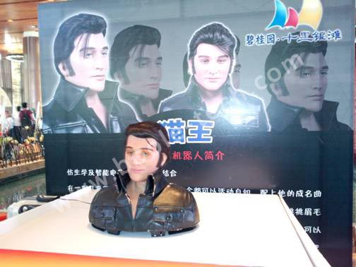 機器人貓王,這個智能防真機器 人更是將仿生學及智能電子控制真正完美的結合,很難另人想像,在一副幾乎可以亂真的面孔下,五官居然全都可以活動自如,配上他的成名曲,跟著音樂節(jié)拍,眼睛忽閃忽閃,時而注視你,時而望向遠方,挑挑眉毛,搖頭晃腦,仿佛一代巨星復活,給您開一場專場演唱會,再加上您可以為他量身打造各種造型,可當珍藏紀念,更可以接上你的手機,MP3,把他當成一個桌面人型音響,還可以接上MIC麥克風跟他一起高歌一曲,別有一番味道。