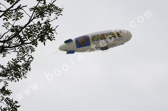 無人機退場后,一輛熱氣球飛艇和一組背著動力傘的“星球戰士”隨之飛抵現場,而同時,另一組“星球戰士”手拉繩索從天而降。