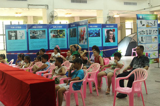 這是發生在海南瓊海的某軟件職業技術學院藝術館開展的科技夏令營活動,其中智能機器人科普展覽的一幕。從海口專程驅車趕來的賀女士,帶著女兒看完了展覽,感受了這一切后,交口稱贊,要求女兒回去后寫一篇心得筆記。