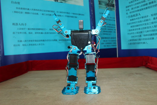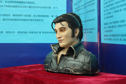 除了跳舞機器人,還有高仿真人貓王、高仿真恐龍機器人、會打兵乓球的機器人、家庭小王子機器人、腦電波測試儀機器人、紅蜘蛛機器人等。