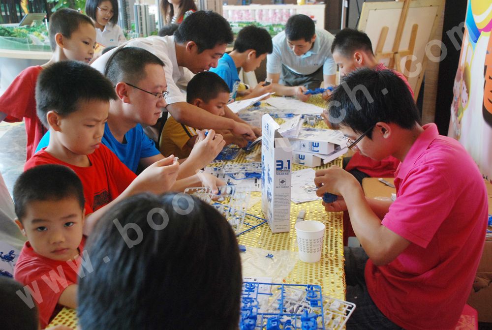 除了機器人大跳江南style外,現(xiàn)場還設立了DIY互動區(qū),游客們可以親手組裝機器人,體驗歡樂有趣的過程,把組裝好的機器人帶回家,孩子們都顯得特別有成就感。